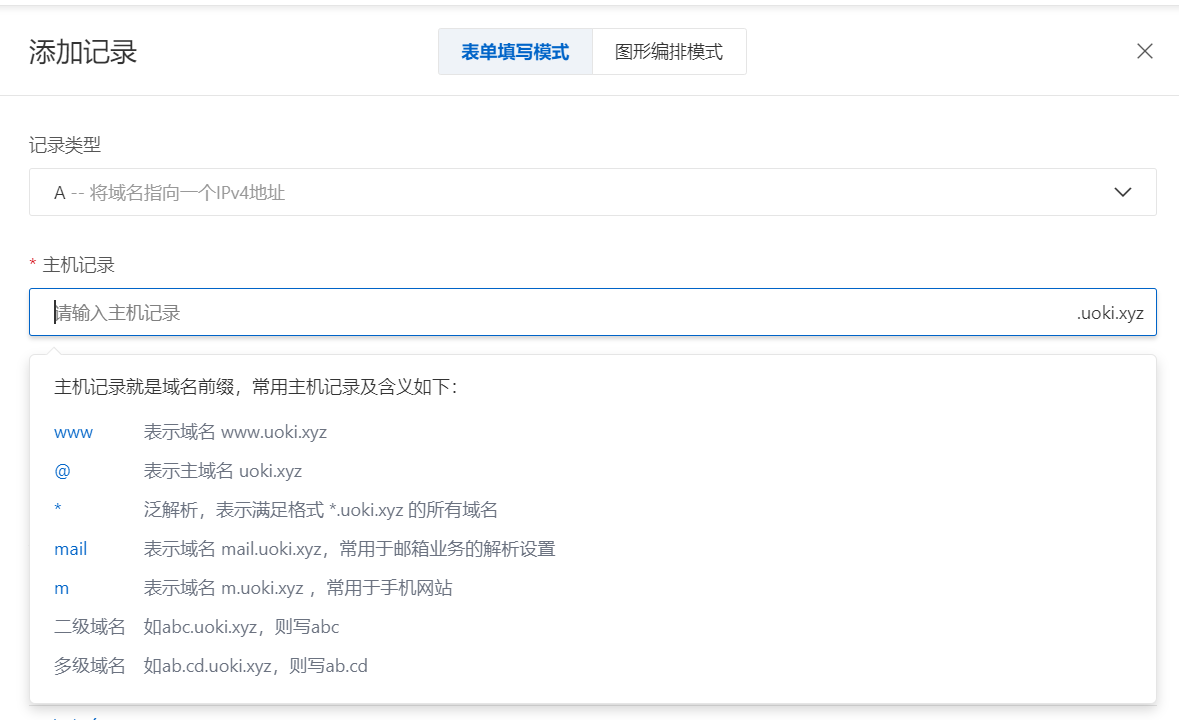 第一个设置 www 记录,这样的话你的域名就可以以www.xxx.com的方式被访问。