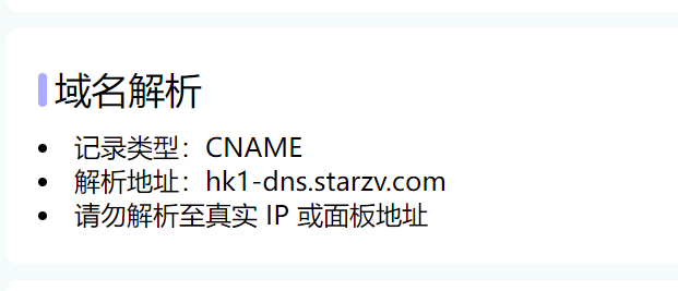 如果你和我用的是一样的服务器,记录值就填写hk1-dns.starzv.com,从其他平台购买的服务器也可以查看对应的记录值。