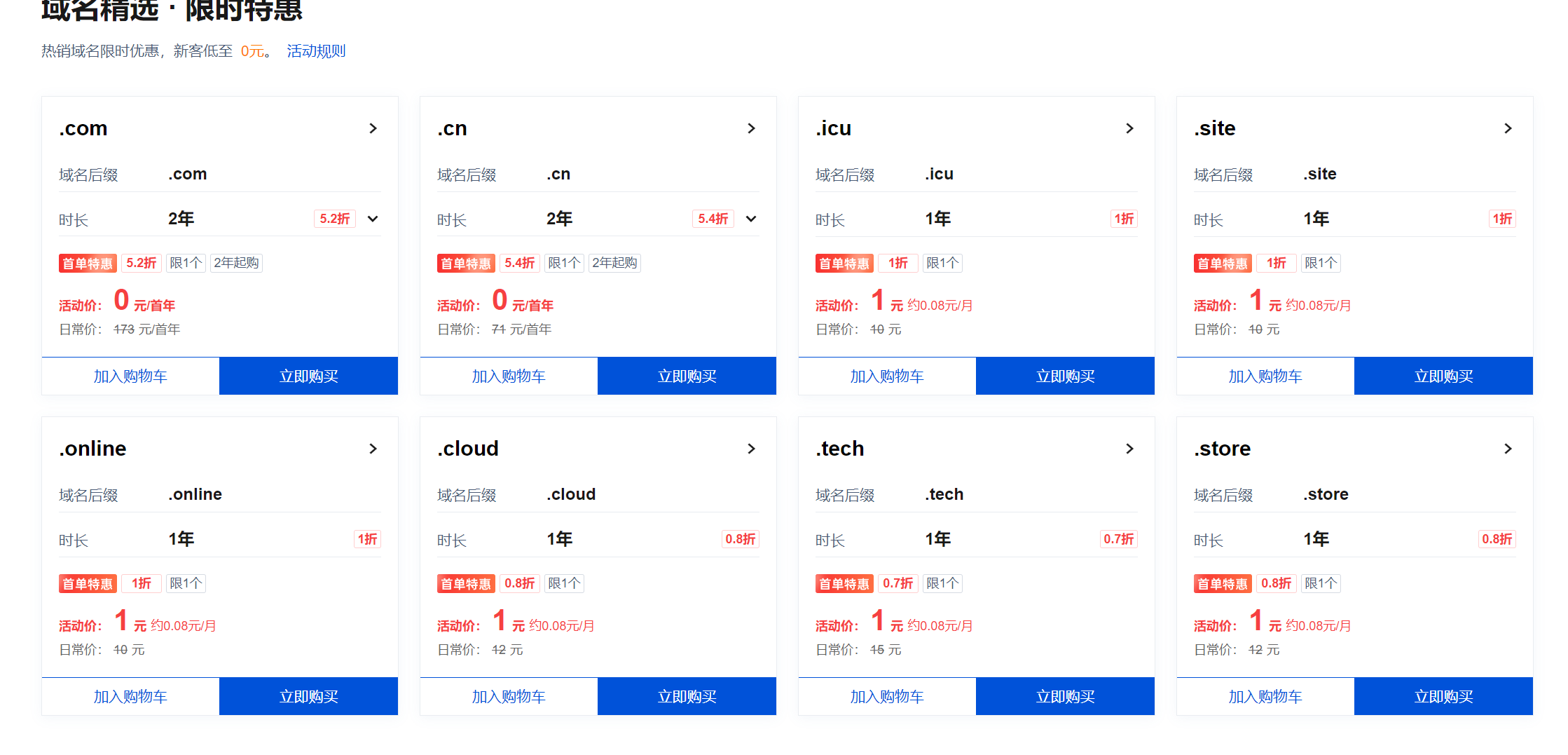 .com,.cn,.xyz,.top……所有的域名使用效果是没有差别的,但.com和.cn这种因为常用且好记所以价格高,所以我们选一些冷门的域名即可。